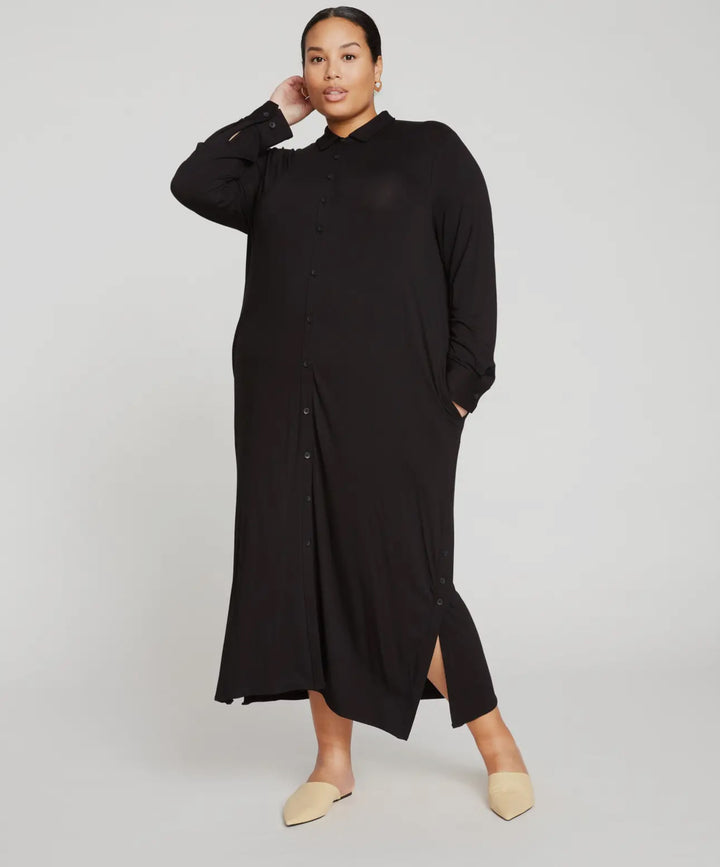 Sally Liquid Jersey Shirt Dress-Black
