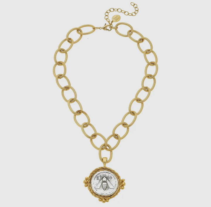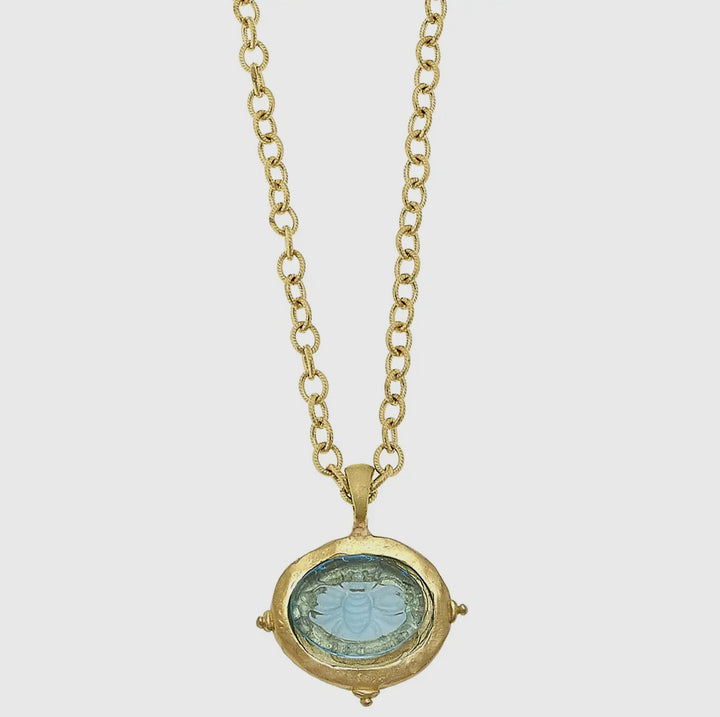 Susan Shaw | Aqua Venetian Glass Bee Itaglio Necklace